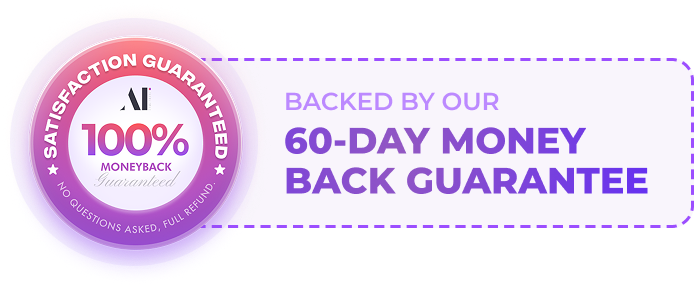We back every membership with our ironclad 60-day guarantee - if you don't see the potential for life-changing recurring income within your first 60 days, simply email our support team for a complete refund. Plus, you can even keep access to the course and all the bonuses as our gift to you.
