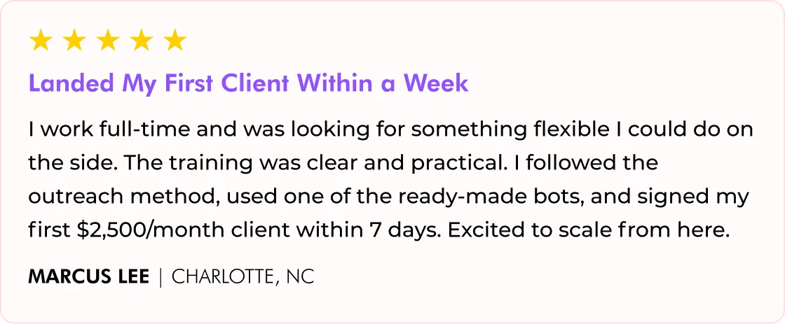 “Didn’t build anything from scratch. Just used one of the pre-built bots and sent a demo video. The business owner signed the same day.”